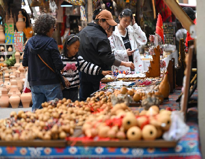 11月14日,在美国路易斯安那州新奥尔良,一名女子在德斯特雷汉种植园金秋节上选购手工艺品。新华社发(魏兰摄)