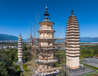 2月1日,游人在福州国家森林公园里赏樱(无人机照片)。