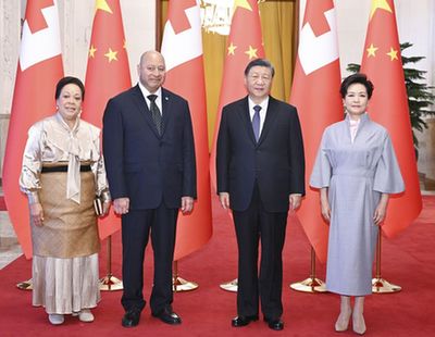 4月26日,游人在贵州省黔东南苗族侗族自治州丹寨县龙泉山景区杜鹃花丛中游玩。近日,各地鲜花盛开,吸引人们走出家门踏青赏花。新华社发(杨武魁摄)