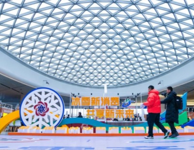 1月7日,小朋友在宁夏银川市贺兰山岩画景区体验冰道雪圈速滑。