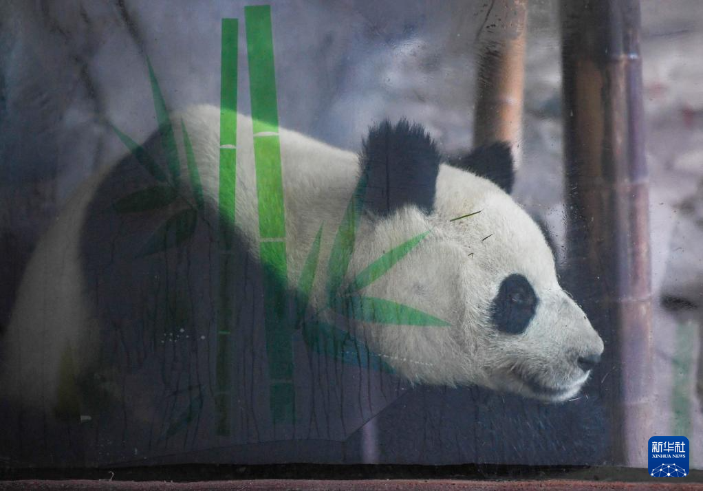 这是1月3日在重庆永川乐和乐都动物主题乐园熊猫馆拍摄的大熊猫“青花”。