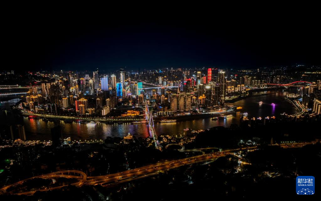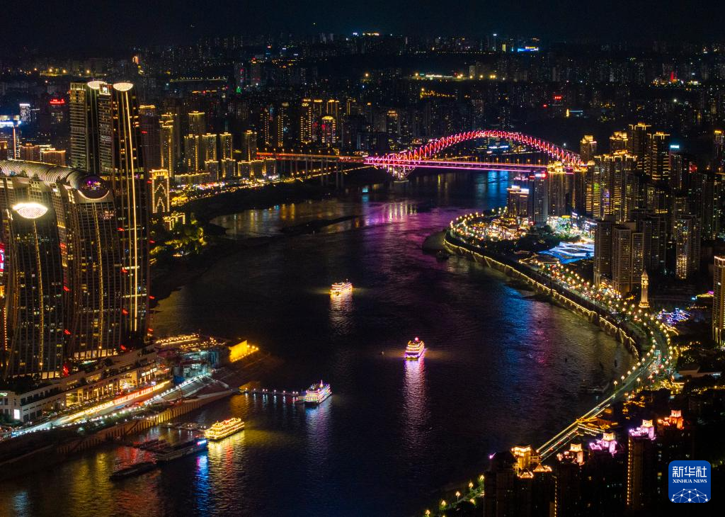 8月23日拍摄的重庆中心城区夜景(无人机照片)。