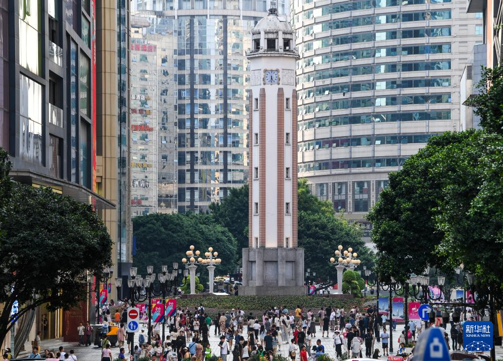 8月21日,游客在重庆市渝中区解放碑商圈休闲。