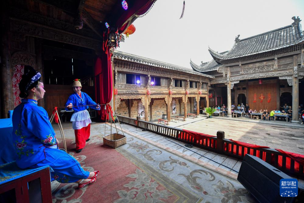 在长沙铜官窑国风乐园, 演员在表演“湖南花鼓戏” (9月11日摄)。