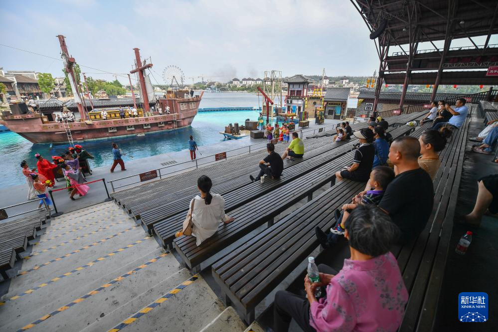 在长沙铜官窑国风乐园,游客在观看“黑石远渡”表演(9月11日摄)。