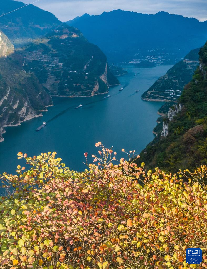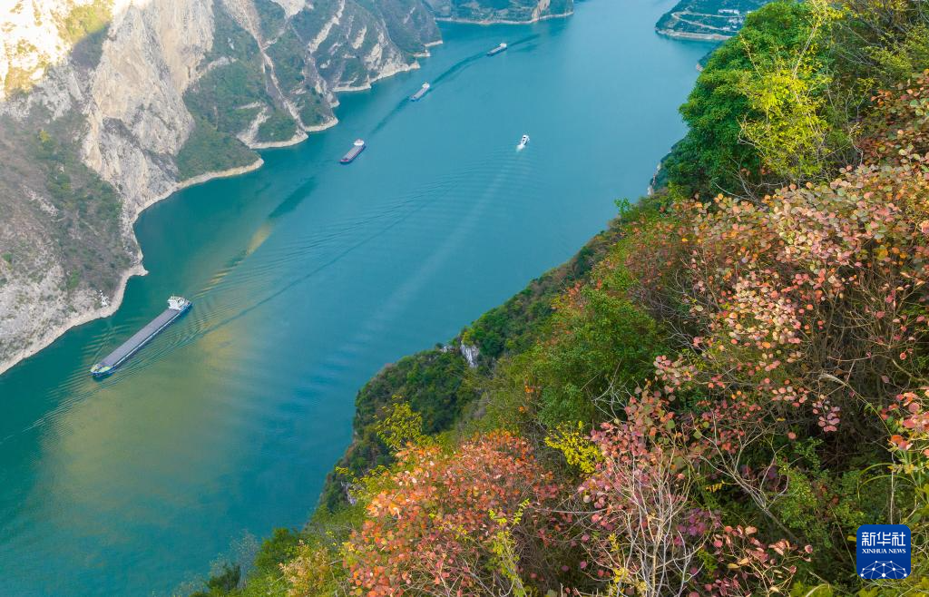 初冬时节,长江三峡西陵峡两岸色彩斑斓,好似一幅美丽画卷。