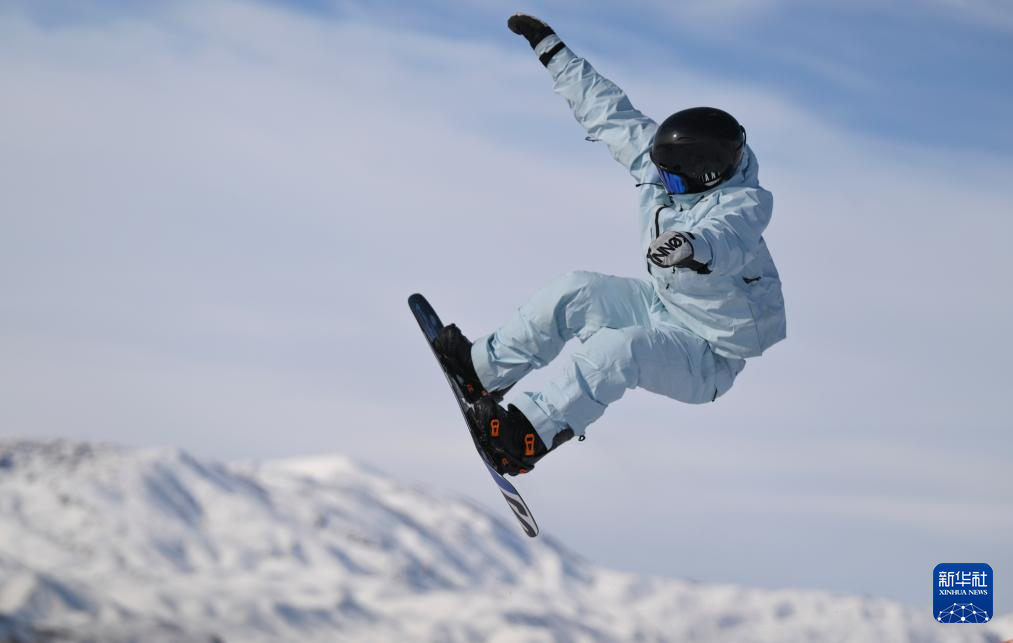 1月28日,雪友在新疆阿勒泰将军山国际滑雪度假区飞越跳台。