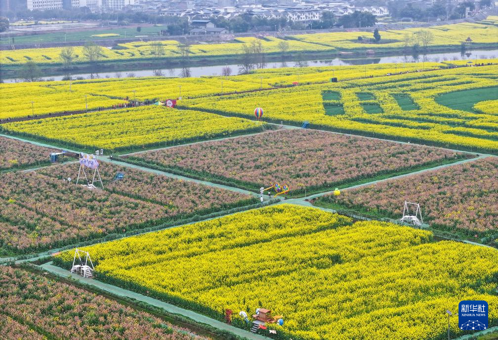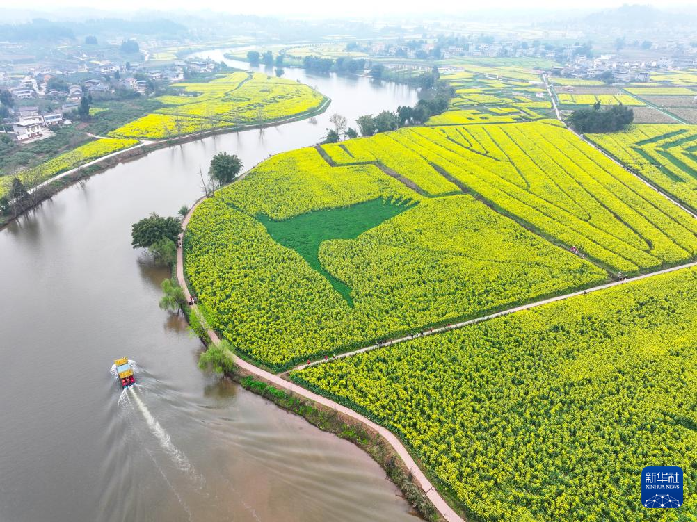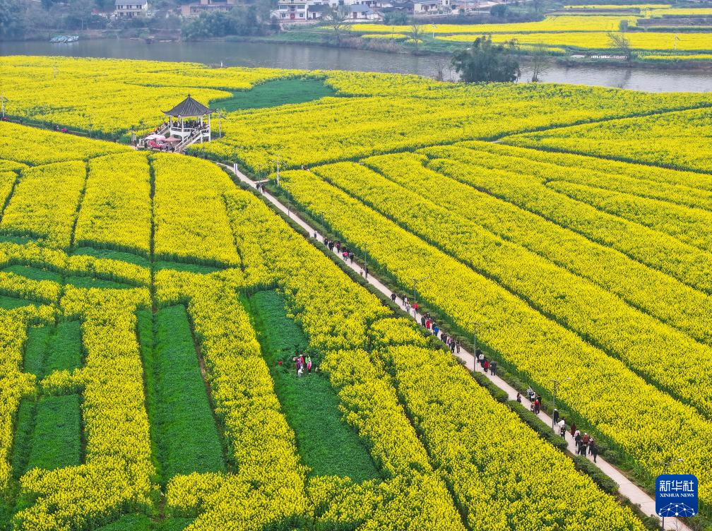 早春时节,重庆市潼南区的32.2万亩油菜花竞相绽放,成为春日里一道靓丽的风景线。