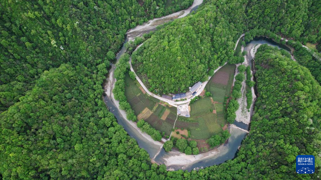 这是4月21日在陇南市康县阳坝镇拍摄的茶园(无人机照片)。