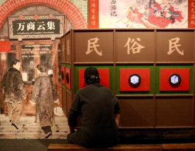 5月3日,游客在河北省唐山市丰南区河头老街景区观看表演。