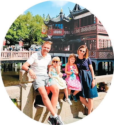 外国游客在上海豫园游览合影。