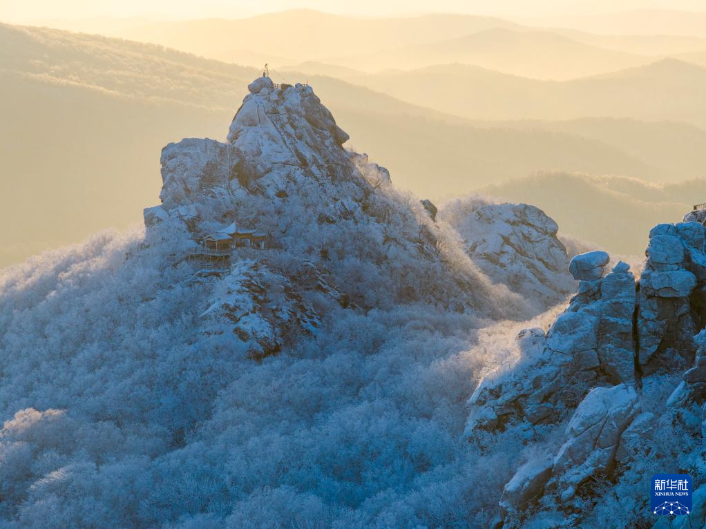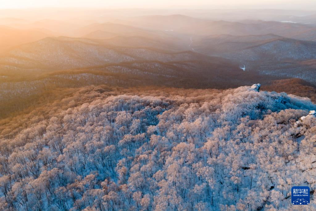 1月25日晨,位于黑龙江省双鸭山市境内的黑龙江七星山国家森林公园出现雾凇景观,朝晖映射下,霜华满山,蔚为壮观。