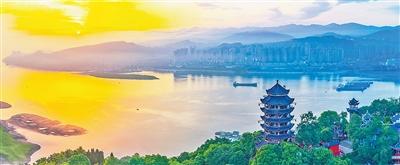 夜色渐浓,名山景区五云楼的灯火如星河璀璨,成为长江岸边最耀眼的风景之一。