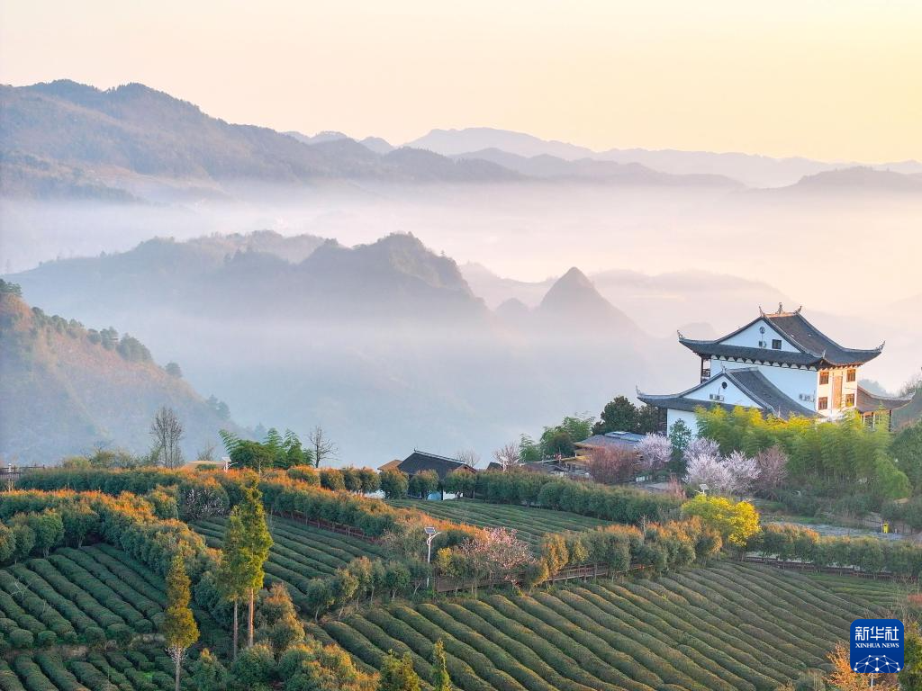 3月12日拍摄的贵州省开阳县禾丰乡马头村云山茶海(无人机照片)。