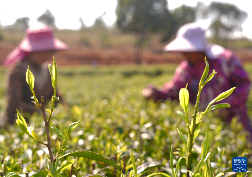 3月12日,茶农在云南省普洱市宁洱哈尼族彝族自治县宁洱镇温泉村茶园采摘春茶。